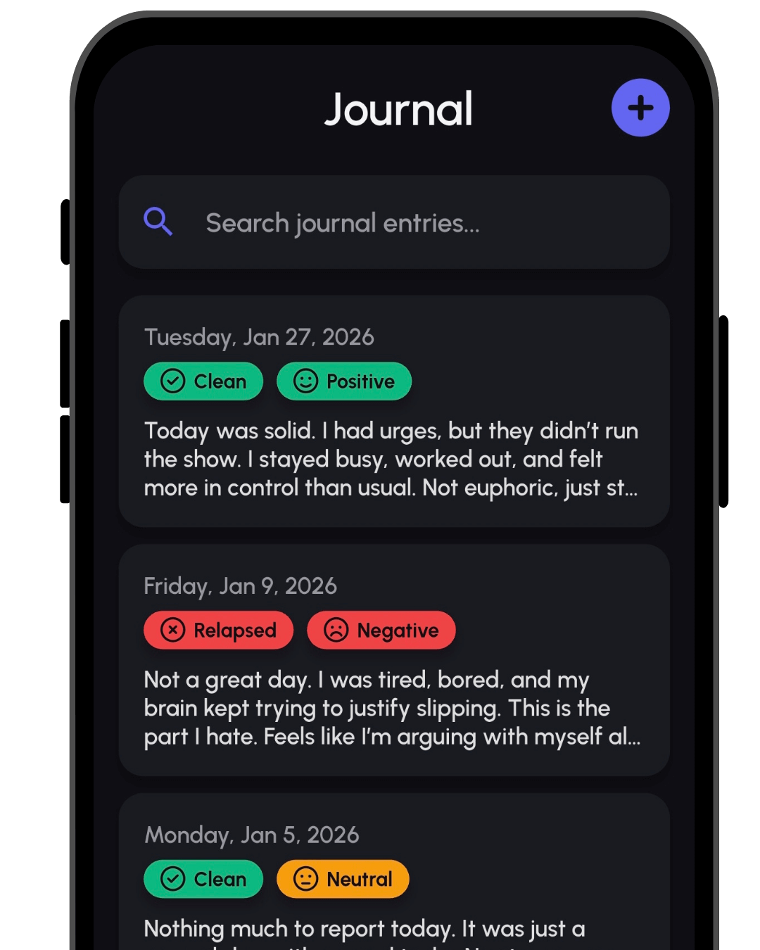 A private space to unload your thoughts, spot patterns, and clear your head instead of acting on urges.